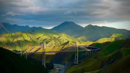 早接酒店乘車前往塞外明珠—神秘美麗的高山湖泊--【賽里木湖】(含門票+海西區(qū)間車費(fèi)用),途經(jīng)素有伊犁第壹景之稱的奇溝飛橋果子溝,車覽【亞洲最大跨度的夸山斜拉橋】,(由于交通原因不能停車),乘車進(jìn)入賽里木湖景區(qū)游覽觀光。