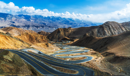 08:00-12:00前往瓦恰盤龍古道,盤龍古道位于喀什地區(qū)塔什庫(kù)爾干塔吉克自治縣瓦恰鄉(xiāng)境內(nèi),當(dāng)?shù)亟型咔」?,全部盤山公路超過(guò)600個(gè)彎道全長(zhǎng)75公里,海拔約4100米左右,黑色公路與土色山體的完美配合,加上遠(yuǎn)處連綿的雪山,這只屬于帕米爾高原;
